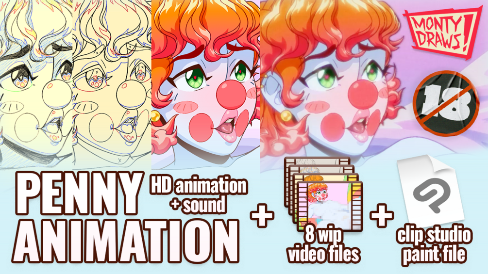 A lovingly crafted, NSFW animation of my Clown Girl Penny.